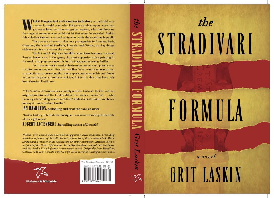 Inside the tube is a piece of parchment with a partial handwritten message — in Italian — attributed to Stradivari. It’s a mystery to Norman Dan, the Toronto-based custom guitar maker, who discovers the tube. But to the MI6 of the British Secret Service, Russian hackers, a greedy auction house owner, and a very rich Russian oligarch, this message-laden glass tube means so much more and could adversely affect the multi-billion-dollar rare musical instrument market.