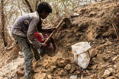 A child mining for mica in India. More than 22,000 children globally work in mines to extract mica, a common ingredient in everyday Canadian beauty products. Photo: World Vision (CNW Group/World Vision Canada)
