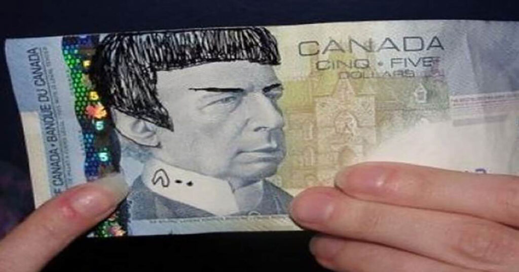 Canadian Star Trek fans have been showing their love towards Leonard Nimoy since his death by adding pointed ears and hair cut to the portage of Prime Minister Sir Wilfred Laurier on the face of the Canadian $5 note.