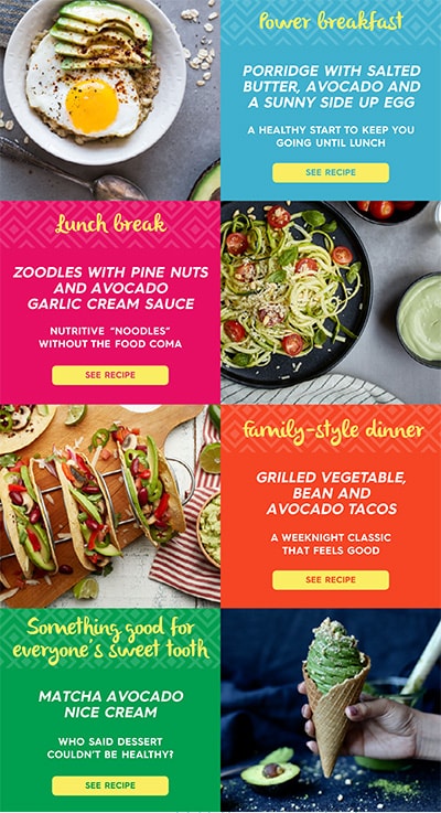 Avocados from Mexico help you start the day off right, give you a pick-me-up at lunchtime, perk you up at snack time, and add flavour to your dinner. So anytime is AVOTIME! Make Avocados from Mexico part of any meal to energize your family!