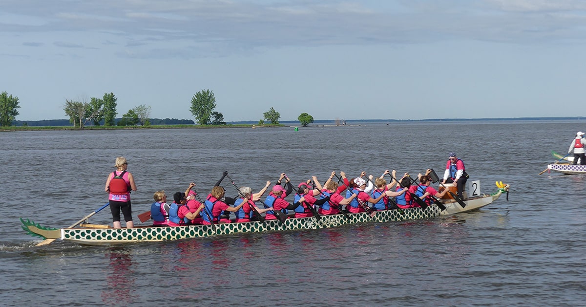 Dragon boating has been shown to enhance the physical, psychological and social well being of breast cancer survivors. A groundbreaking 1998 study by Dr. Don McKenzie, a sports medicine specialist at the University of British Columbia, clearly established the benefits of paddling these twenty-person boats.