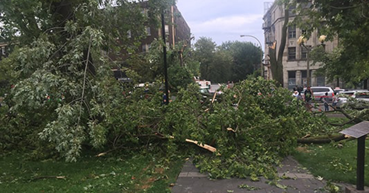 Indeed, in the span of a few minutes on August 22, 2017, a microburst struck the Notre-Dame-de-Grâce sector. Along its path, it laid waste to a large part of the southern end of Parc Notre-Dame-de-Grâce. Some 45 trees, mainly maples, were felled in the wake of the storm.