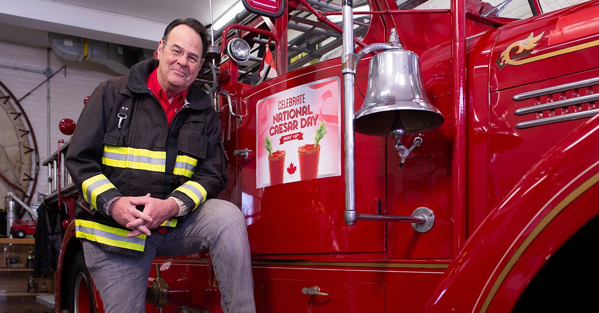 Swapping his Bluesmobile for a vintage firetruck, Aykroyd is celebrating the golden anniversary of Canada’s Cocktail by sharing a Caesar – and some Caesar stories, with Canada’s unsung heroes.