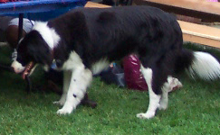 ‘My Border Collie/Lab mix is named Tuxedo. Makes sense since he wears black and white. Tuxedo is in love with his near mirror image Pepé Le Pew’*, the famous cartoon skunk renowned for his flirtatious antics with the ladies, and now with Tuxedo. Pepe lives in our backyard.