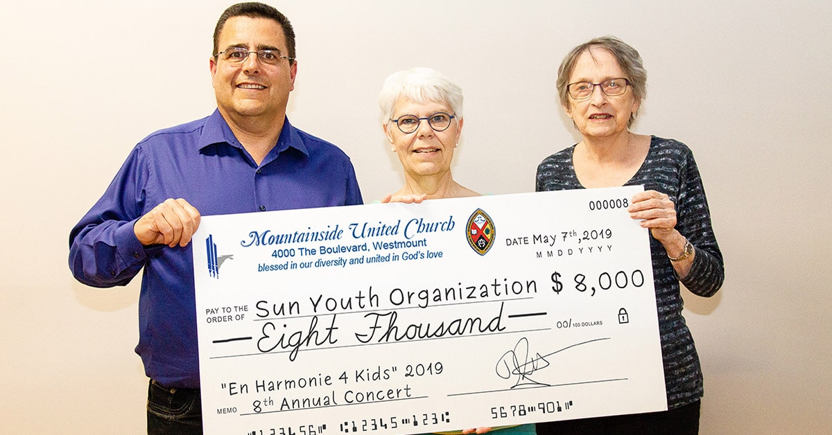 For the eighth year in a row, Westmount’s Mountainside United Church presented “En Harmonie 4 Kids”, a concert to raise funds for Sun Youth’s children’s programs. The show was held at Mountainside United on Saturday, April 6th and brought together talented performers, adults and children, united to help kids in need. Throughout the evening, the Mountainside United Church Choir, the English Montreal School Board Junior Chorale, the Montreal Chinese Children’s Choir, the Con Brio Ensemble of FACE School, the McGill Conservatory Children’s Choir, le Petit ChÅ“ur de Rosemère and le ChÅ“ur Anima Musica offered a varied program of choral and orchestral arrangements to a captivated audience. The concert was a great success, generating $8,000 for Sun Youth! These funds will be used by the organization to assist families referred through youth centers, children’s hospitals and will also help fund Sun Youth’s Bullying Prevention and Conflict Resolution program in schools.