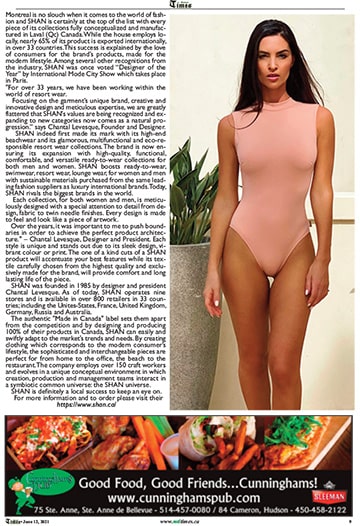 Montreal is no slouch when it comes to the world of fashion and SHAN is certainly at the top of the list with every piece of its collections fully conceptualized and manufactured in Laval (Qc) Canada. While the house employs locally, nearly 65% of its product is exported internationally, in over 33 countries. This success is explained by the love of consumers for the brand’s products, made for the modern lifestyle. Among several other recognitions from the industry, SHAN was once voted “Designer of the Year” by International Mode City Show which takes place in Paris.