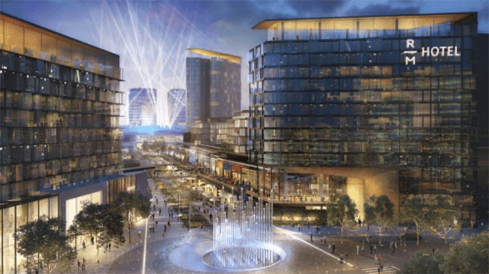 Hotels, shopping centre, cinemas, and a large parking space, all of that at this giant development (photo Carbonleo)