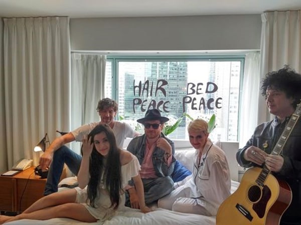 John and Yoko Give Peace a Chance – Artists re-enact the Bed-In for the photographers