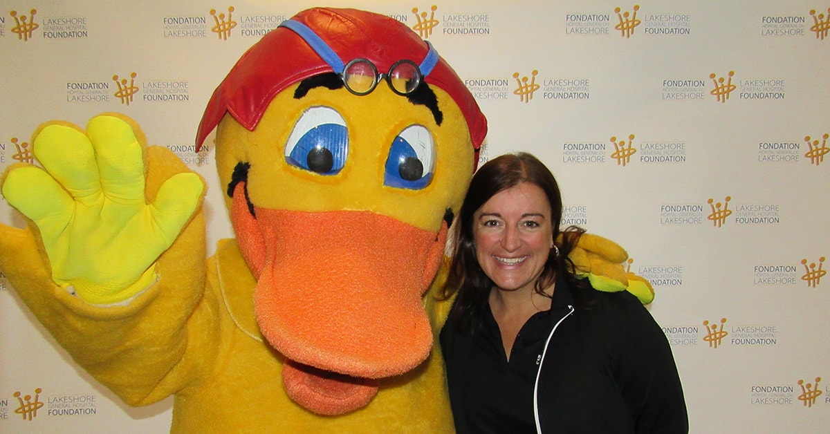 Feature image: Mascot Lakeshore Louis and Heather Holmes, LGHF Managing Director