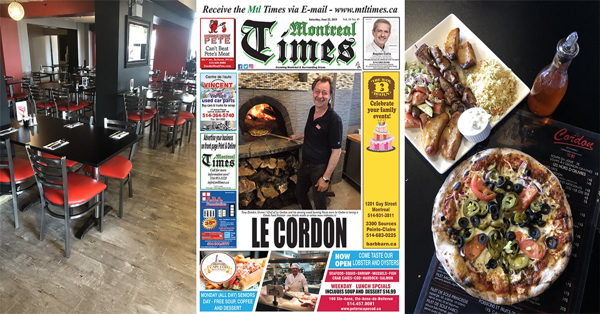 For owner Tony Zoitakis it is all about the quality of the food which brings satisfied customers back time and again. “Everything is homemade from the sauces to the pizza dough,” he says. The place is bustling at lunchtime Monday to Friday and at night it’s a good bet Habs fans are watching the hockey game on the large TV screen. Le Cordon offers a children’s menu too for family-friendly dining out. A native of Nafpaktos, Greece, Tony started the family-run restaurant in 1998 and has never looked back. His wife Anna makes all the desserts including baklava, a favourite Greek dessert. “The kids” ranging in age from 24-31 help out the friendly efficient staff. Le Cordon’s “Greek Festival” has just kicked off and will feature traditional Greek fare, in addition to Canadian cuisine, for a value-added summer menu.