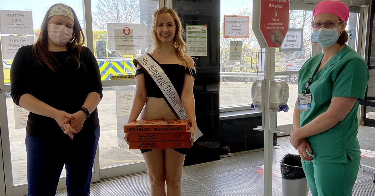 On May 12th, she was driving around and enjoying the sun, when she heard on the radio that it was International Nurses Day. Katherine decided to pick up some large pizzas and then delivered them to nurses at St. Mary’s, Jewish General, Lakeshore and Montreal General hospitals. “They were all so sweet and so excited to take pictures with ‘Miss Montreal’… when I was the one who was honoured to meet THEM… thank you to all the nurses who are putting their lives at risk during this pandemic – all for their love of humanity and their selfless need to help others. Nurses are our heroes, especially here in Montreal where 55% of Canadian COVID19 cases are,” she wrote on her blog and then added, “We don’t have to wait for International Nurses Day to show appreciation to nurses. I encourage (everyone) to come up with their own ways that they can spread kindness and positivity to not only nurses, but to every person in their lives”.