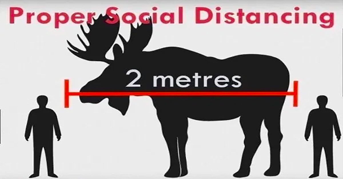 the length of separation (2 metres or length of a moose) required in physical distancing