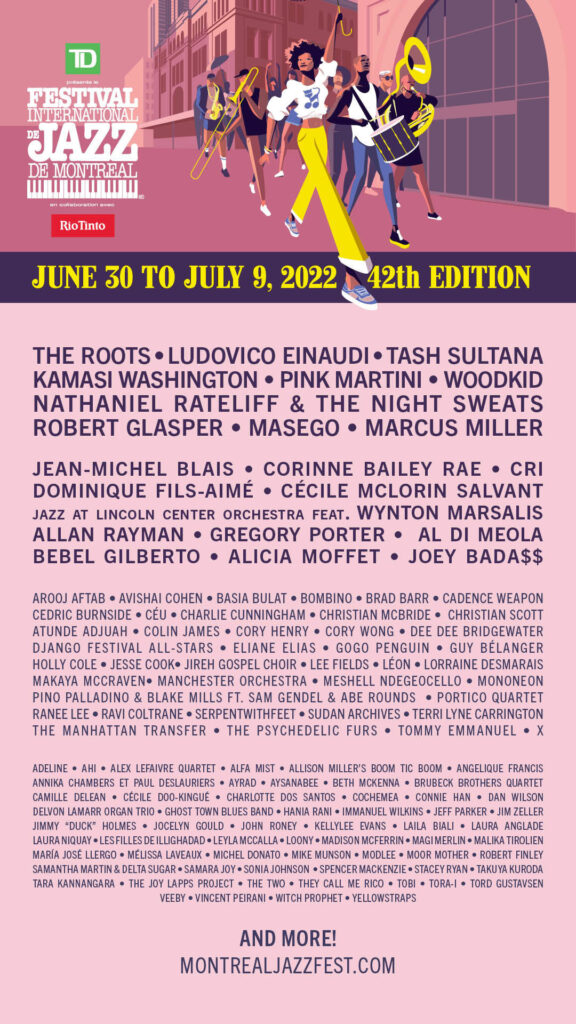 The 42nd edition of the Festival International de Jazz de Montréal, presented by TD Bank Group in collaboration with Rio Tinto, will soon be here! As Montréal returns to normal, the festival is getting ready to bring back the magic and fun of major music happenings in the city centre. In total, more than 350 concerts presented by artists from here and afar, 2/3 of which are free, will be held from June 30 to July 9, 2022. The menu will feature music legends, discoveries, diversity, experimentations as well as several shows created exclusively for the festival. Jazz will be throwing its arms wide open for the occasion to welcome musical influences such as electronic, hip hop, blues and more.