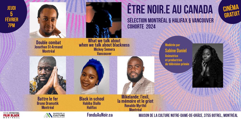 The Festival continues with a free film night dedicated to BEING BLACK IN MONTREAL & BEING BLACK IN CANADA (2024 Francophone and Anglophone Cohorts). This screening will showcase five documentary short films produced in Montreal, Halifax, and Vancouver as part of an initiative by the Fabienne Colas Foundation. The program is presented by Netflix, in collaboration with the National Bank of Canada, and supported by Telefilm Canada, the Canada Media Fund, and the Canada Council for the Arts. Subtitled in English and French, the screening will feature:Battre le fer by Bruno Dramatik (Montreal);Double combat by Jonathan St-Armand (Montreal);Mikelande: Exile, Memory and the Griot by Ronaldo Myrthil (Montreal);What We Talk About When We Talk About Blackness by Mickey Semera (Vancouver);Black in School by Habiba Diallo (Halifax).The screening will be followed by a discussion with the filmmakers, moderated by Sabine Daniel, award-winning television host and producer.