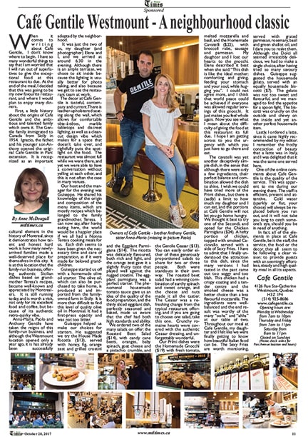 Anna-Maria, Paolo and Anthony Gentile have taken the reigns of this family-run business, and although the Westmount location opened only a year ago, it is has already been successfully adopted by the neighbourhood.