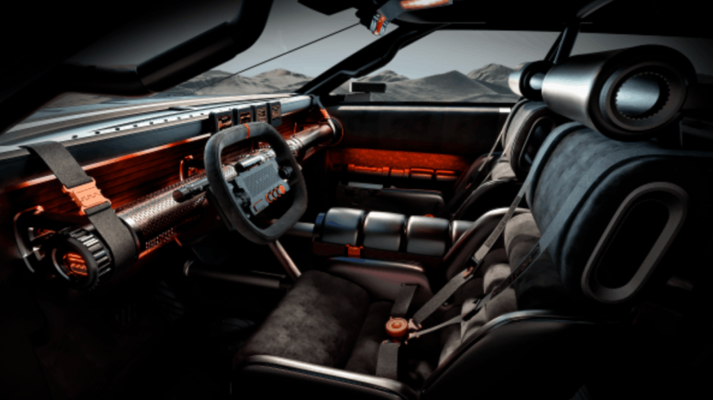 The concept also stands out through several distinctive details, including a pixelated central display, terrain-specific drive modes (Snow, Sand, Mud, Auto, and XRT), and the presence of CRATER MAN, a symbolic character integrated into various elements throughout the vehicle.