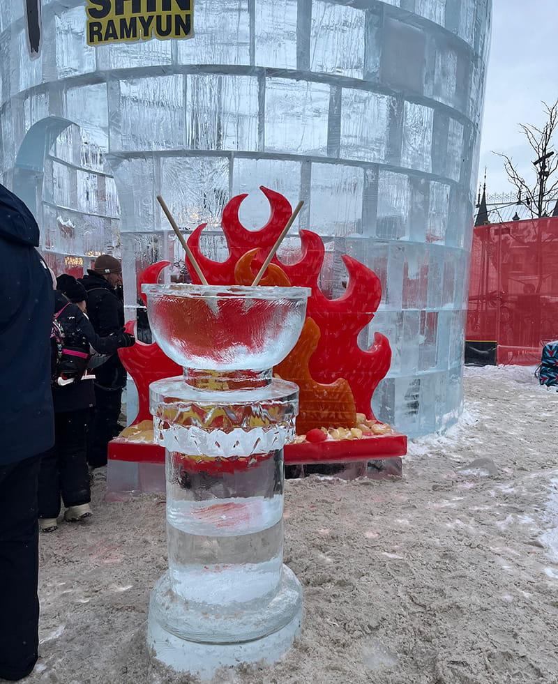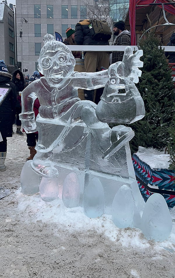 New for 2026 is the Bonhomme Ice Palace where visitors are engaged in an immersive journey as they experience folk tales and legends that have shaped the soul of Quebec. The stories come to life through the Palace’s ice sculptures. Among the legends brought to life are The Flying Canoe, Rose Latulippe, The Bride’s Veil—The Legend of Montmorency Falls, The Seven O’clock Man and The Legend of the Carnival.
