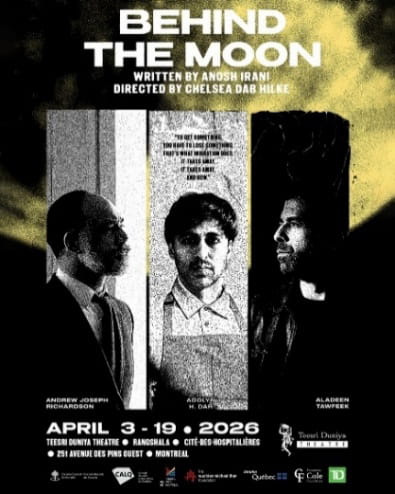 MONTREAL, April 10, 2026 — What begins as a chance encounter between an employee of a South Asian restaurant in Toronto and a taxi driver who arrives at closing time because he craves some Indian food turns into an expose that delves into the ugly side of the current wave of the immigrant experience in Canada. That’s the premise behind Anosh Irani’s play Behind the Moon, which is playing at the Teesri Duniya Theatre, 251 Avenue des Pins West, until April 19, 2026.
