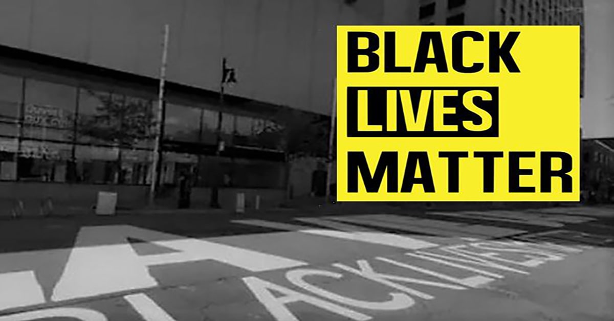 Black Lives Matter – La Vie des Noirs Comptent painted on Ste-Catherine St.