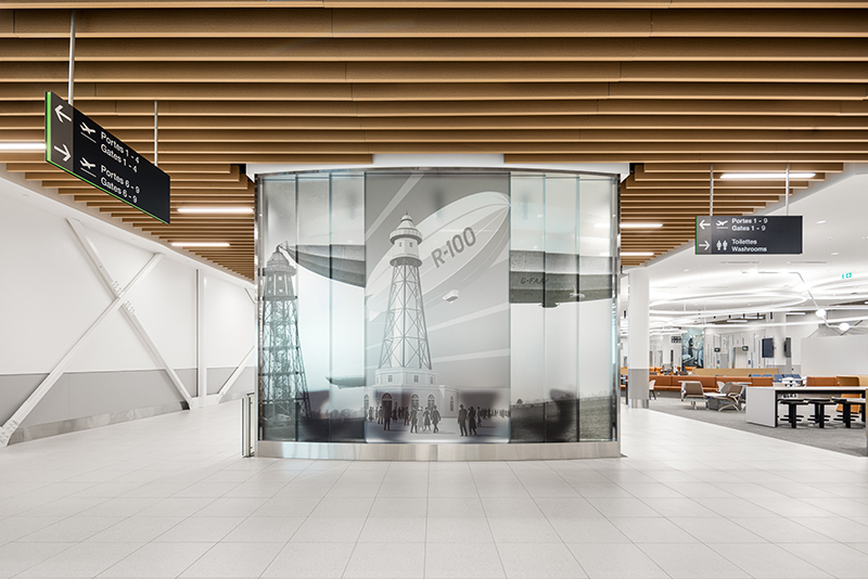 The sleek design, which maximizes natural light, incorporates contemporary nods to the historic visit of the R-100 airship in 1930, when its arrival in Saint-Hubert drew massive crowds and symbolized the technological daring of the era. Opened in 1927, Saint-Hubert Airport—now MET – Montreal Metropolitan Airport—is Canada’s oldest airport and served as Montreal’s main