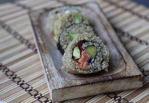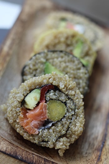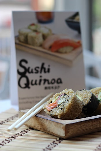 When I asked him what the big differences were between white sushi rice and Sushi Quinoa, Blair explained that it can be used exactly like sushi rice, however, it has a slightly subtler flavour. It is milder, if perhaps a little nuttier, and allows for the flavours of other ingredients in a roll to come through. For this reason, Sushi Quinoa pairs nicely with delicate flavours, ones that perhaps would be imperceptible if served with white rice.