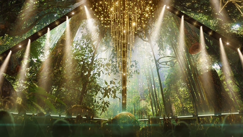 This is more of an experience in storytelling rather than a scientific story. It’s a poetic story that tells the story of the world from its origins to today, he added. And it’s a more active experience for the audience. By watching the show standing up instead of sitting down, it will give them the freedom to move anywhere within the interior of the pyramid, establish a physical relationship to outer space, and even give them the opportunity to create their own story about the formation of the world and humanity.