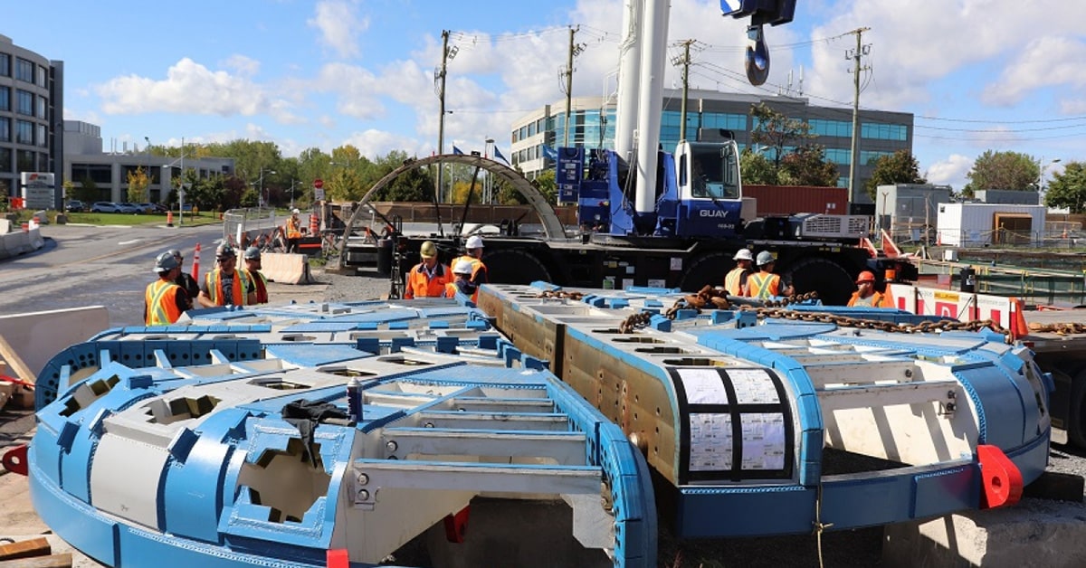 REM tunnel-boring machine – It will be an impressive, huge piece of machinery used in digging a 3.5km long tunnel from the Technoparc in St. Laurent all the way to Montreal-Trudeau airport for the REM trains that will travel through it. The parts for the REM’s tunnel-boring machine (TBM) arrived in Montreal on October 30th and once assembled, it will be digging a tunnel more than 30 metres below the airport runways and the wetlands at the Technoparc. And the REM wants your help in naming it.