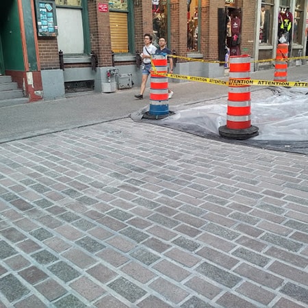 The old cobblestones are being replaced by industrially-produced pieces which probably will be less resistant to our harsh winters