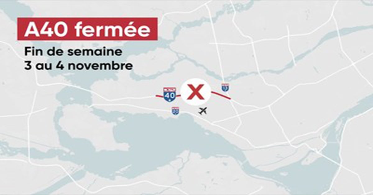Highway 40 closed – The project office of the Reseau express metropolitain (REM) wishes to inform drivers of major work to be done on Highway 40 (A40), which will require the complete closure of a portion of the highway between the A13 (exit 60) and Saint-Jean Boulevard (exit 52) in both directions, including the service roads, from 6 p.m. on Saturday, November 3 to 5 a.m. on Monday, November 5 (closures of the service lane as of 3 p.m. Saturday). Local traffic for stores and businesses in the area around the highway will be allowed.