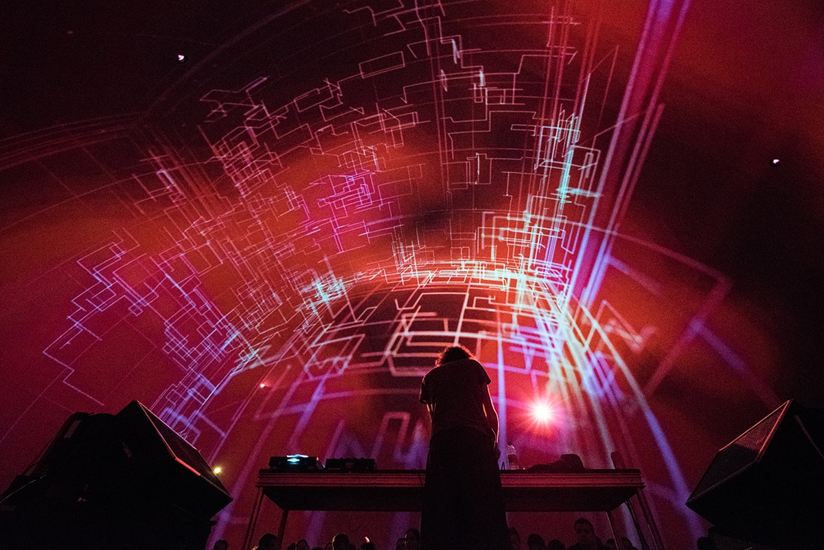 The Satosphere was only opening it’s door for full-pass access sunday night and it was more than a treat. Acid Pauli’s set on Sunday was closing the festivals in spectacular fashion under the outstanding SAT’s dome. The German artist brought his soft downtempo techno and lyrical style under multitude of hypnotic perspectives and stunning visuals signed by artists: Diagraf, LLL and Felix Felix Gourd Gourd. On top of all that, he made a special Leonard Cohen tribute – It was the perfect ambiance for a Sunday mood – First photo by Bruno Destombes – Photos bellow by Trung Ngyuen