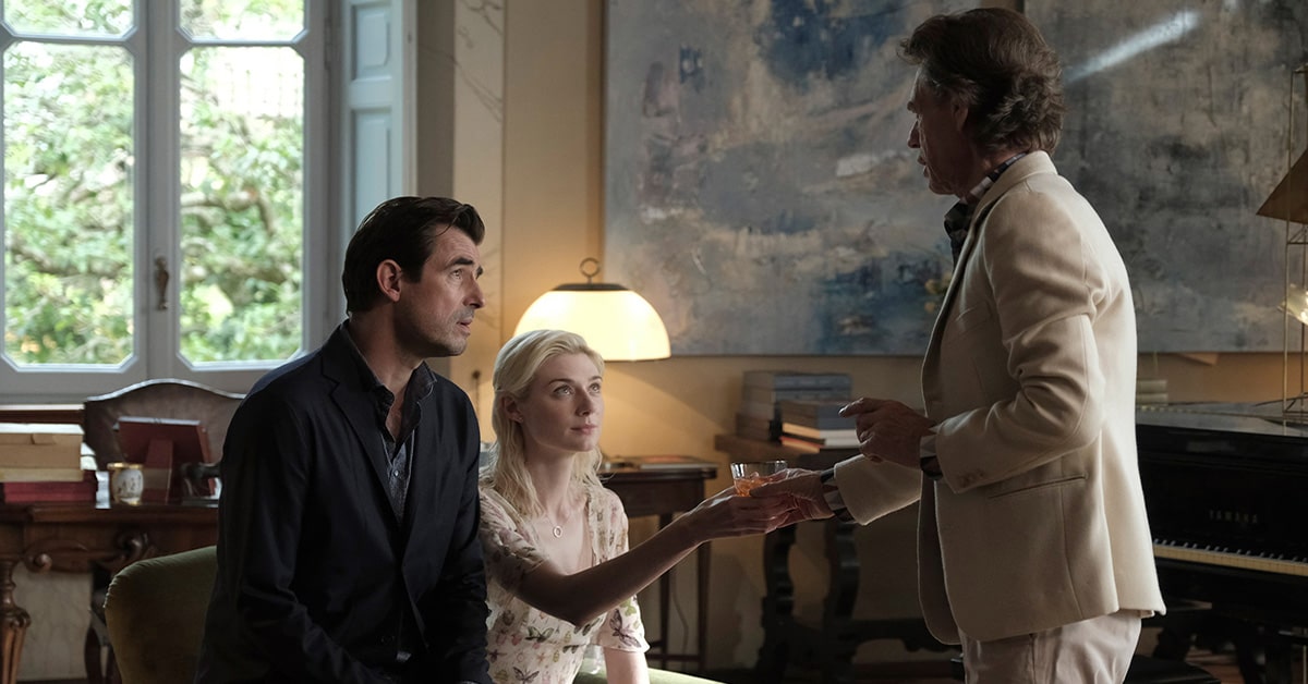 The Burnt Orange Heresy movie review – The film starts with art critic James Figueras (Claes Bang) giving a conference which ends with a sarcastic look at the power of the critic. A point he has already made in one of his books. One of those attending the talk is American tourist Berenice Hollis (Elizabeth Debicki). She is somehow intrigued but also attracted by the critic. Eventually, they start a relationship. The young lady accompanies the critic who has been invited to stay at the Italian villa of a wealthy art collector—Joseph Cassidy, played by no other than Mick Jagger. Cassidy would have a proposal for James that might help him relaunch his somehow declining career. It may also restore James’s finances, which we see are in bad shape, as we could notice for a phone call he receives while driving to the villa. Of course, Cassidy would also get something of high value: a painting by renown, but now recluse artist Jerome Debney (Donald Sutherland).