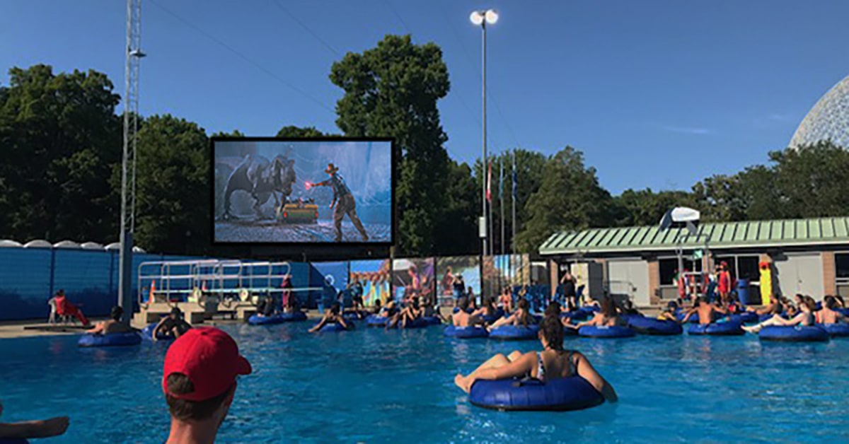 The Parc cordially invites you to come to the Aquatic Complex for movie nights unlike any other. Three times during the summer season, the diving pool will be welcoming swimmers to watch a movie projected on the screen while they’re comfortably seated in their buoys.